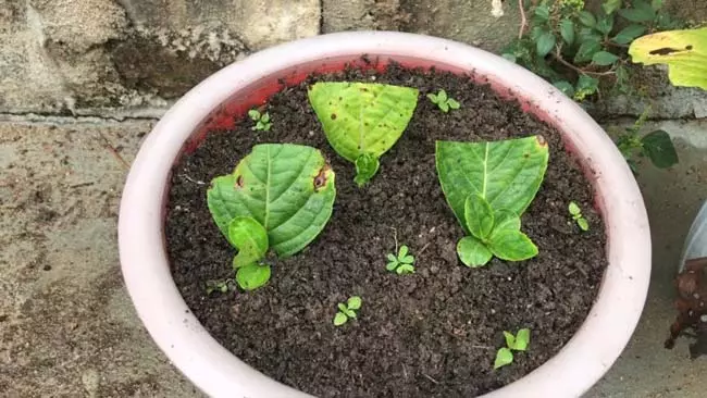 - Cuide das folhas normalmente, regando regularmente para que não sequem. Após 25 dias, novas folhas jovens começarão a aparecer.