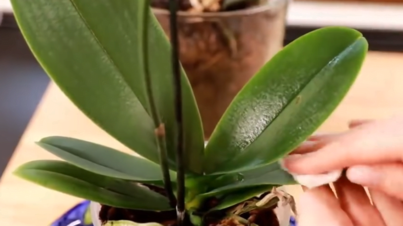 Para cuidar das folhas, use uma mistura de 30 ml de leite e 70 ml de água. Limpe delicadamente as folhas com essa solução usando um cotonete. Esse procedimento simples protege as folhas contra vírus e bactérias.