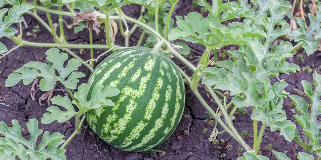 As melancias estão prontas para a colheita quando os tentáculos próximos ao caule do fruto ficam marrons e a parte inferior do fruto muda de brilhante para opaca. Dê batidinhas no fruto; ele deve soar oco, indicando que está maduro.