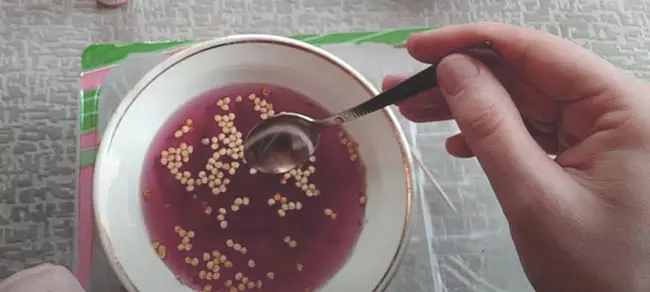 Para o teste de viabilidade, você também pode usar uma solução de permanganato de potássio (a solução deve ser rosa pálida), na qual as sementes são mergulhadas por 10-15 minutos.